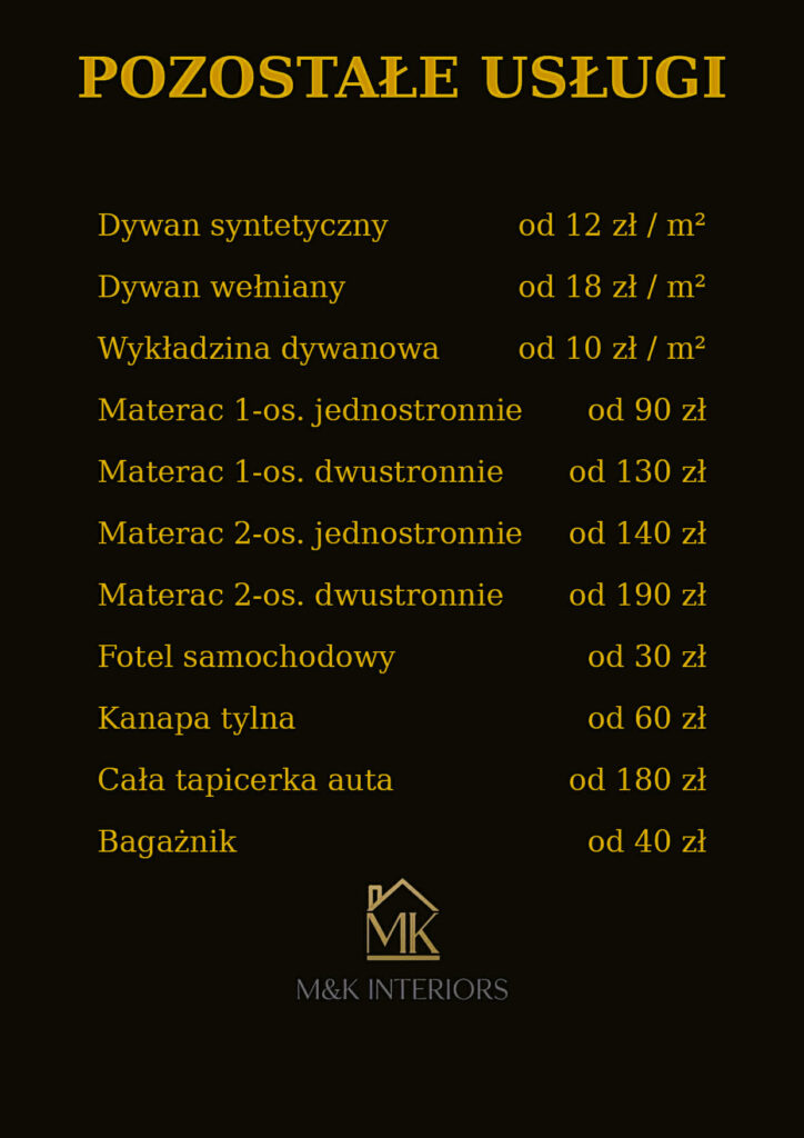 Cennik usług- pranie tapicerki