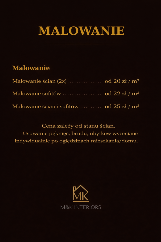 Cennik usług- malowanie